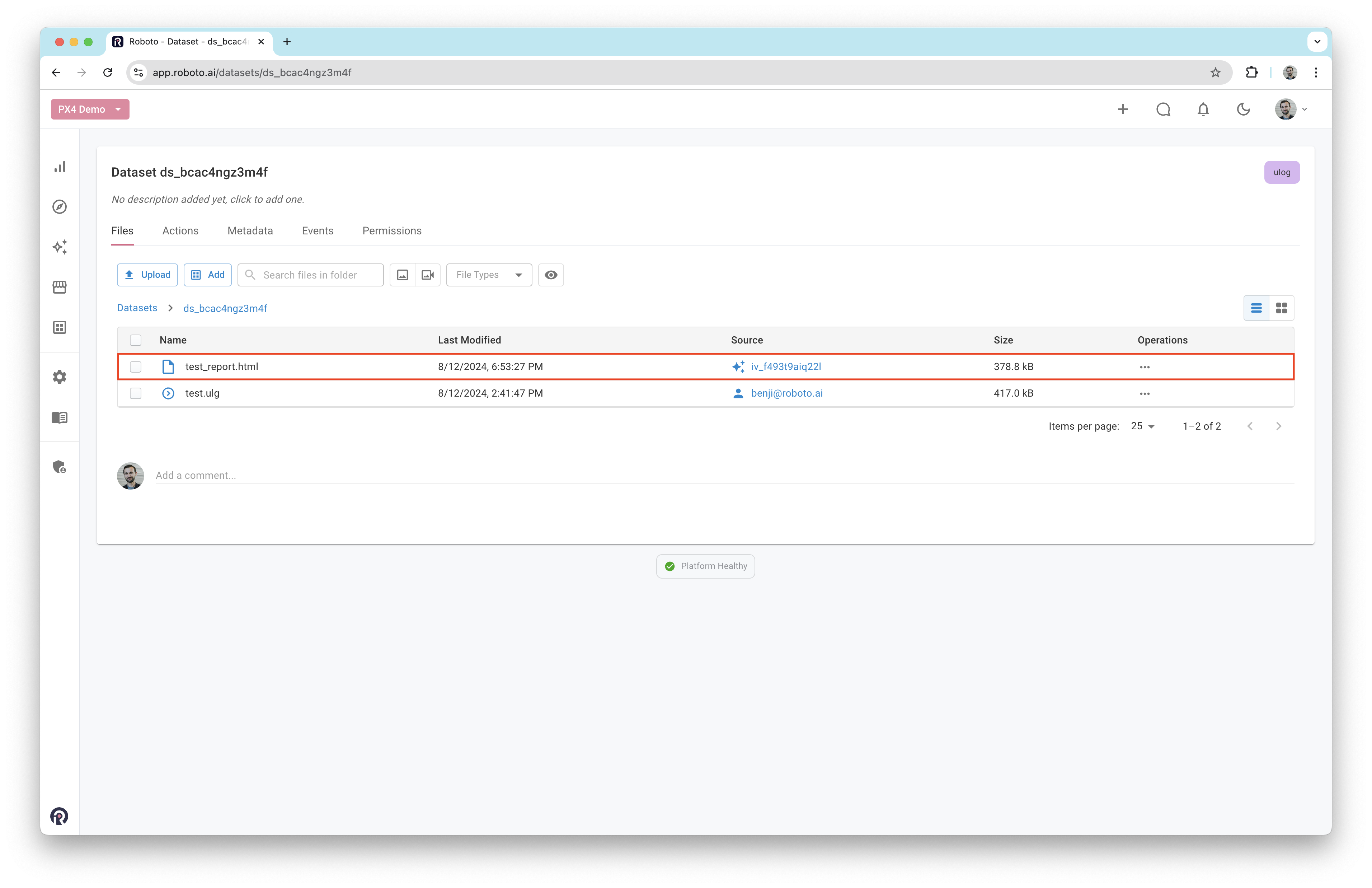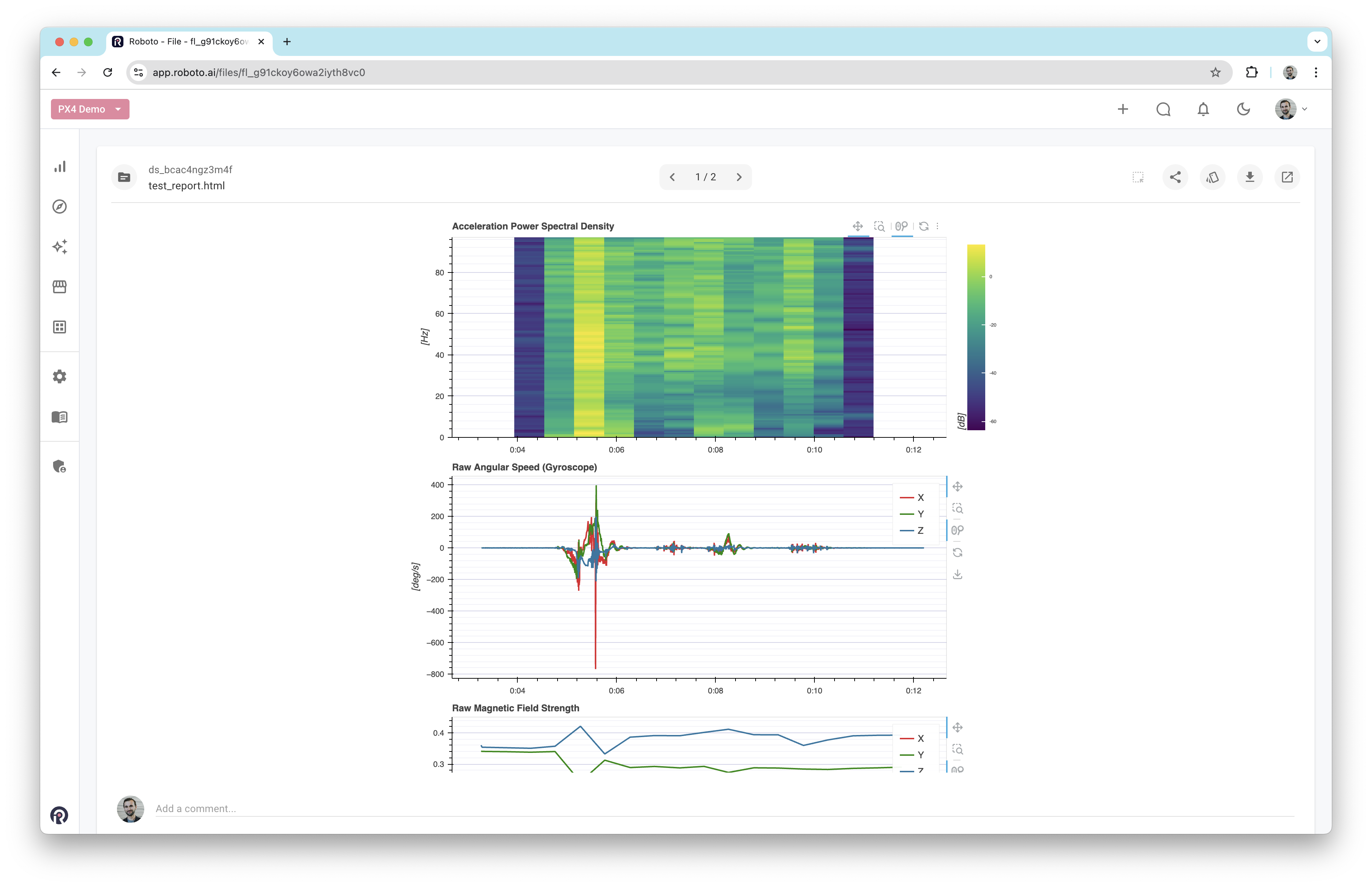 This section explains how to generate, store, and share PX4 Flight Review reports using Roboto.